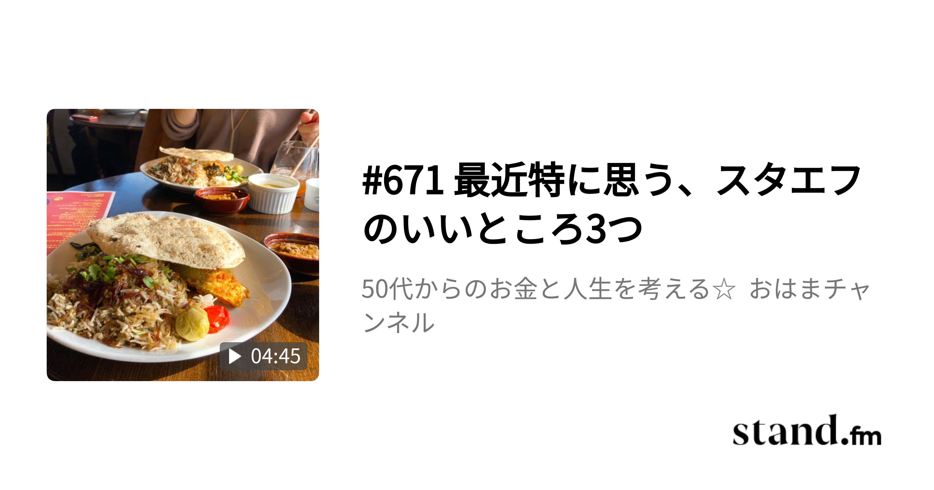 50代からのお金と人生を考える☆ おはまチャンネル | stand.fm「初心者さんのための資産運用ナビゲーター」として、投資初心者さんが最初の一歩を踏み出すための情報を発信中。 証券会社で28年、銀行で6年間働き、現在はフリーで活動しています。 バツイチで育てた2人の息子は社会人。 49歳で婚活し、5年前に再婚した夫と2人暮らし。 好きなことは、本を読むこと、スイーツを食べること、旅行に行くこと。 【無料メルマ…リンクstand.fm