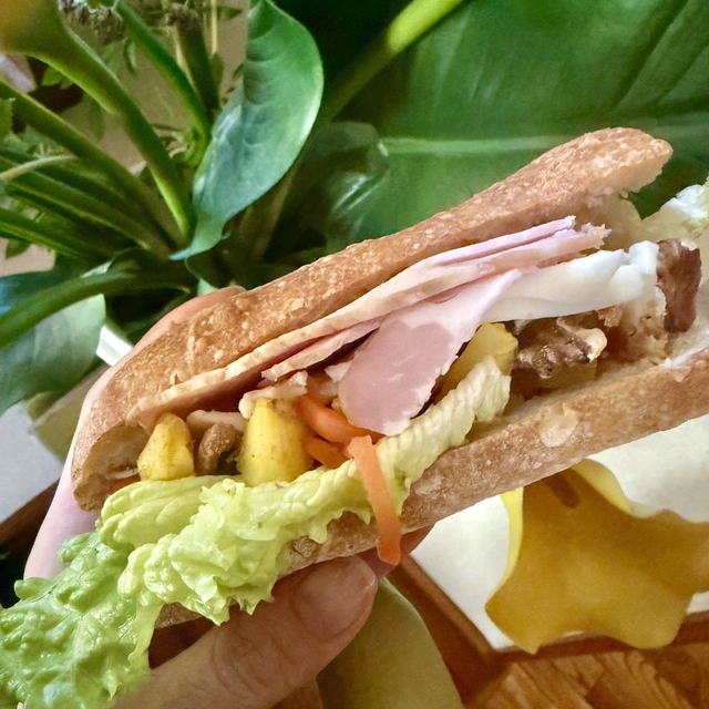 クラストはハードすぎず程よいパリッと感、中はもちもち、酵母のよい香り!レーズンの甘酸っぱさが優しい!美味しくいただきました![]()