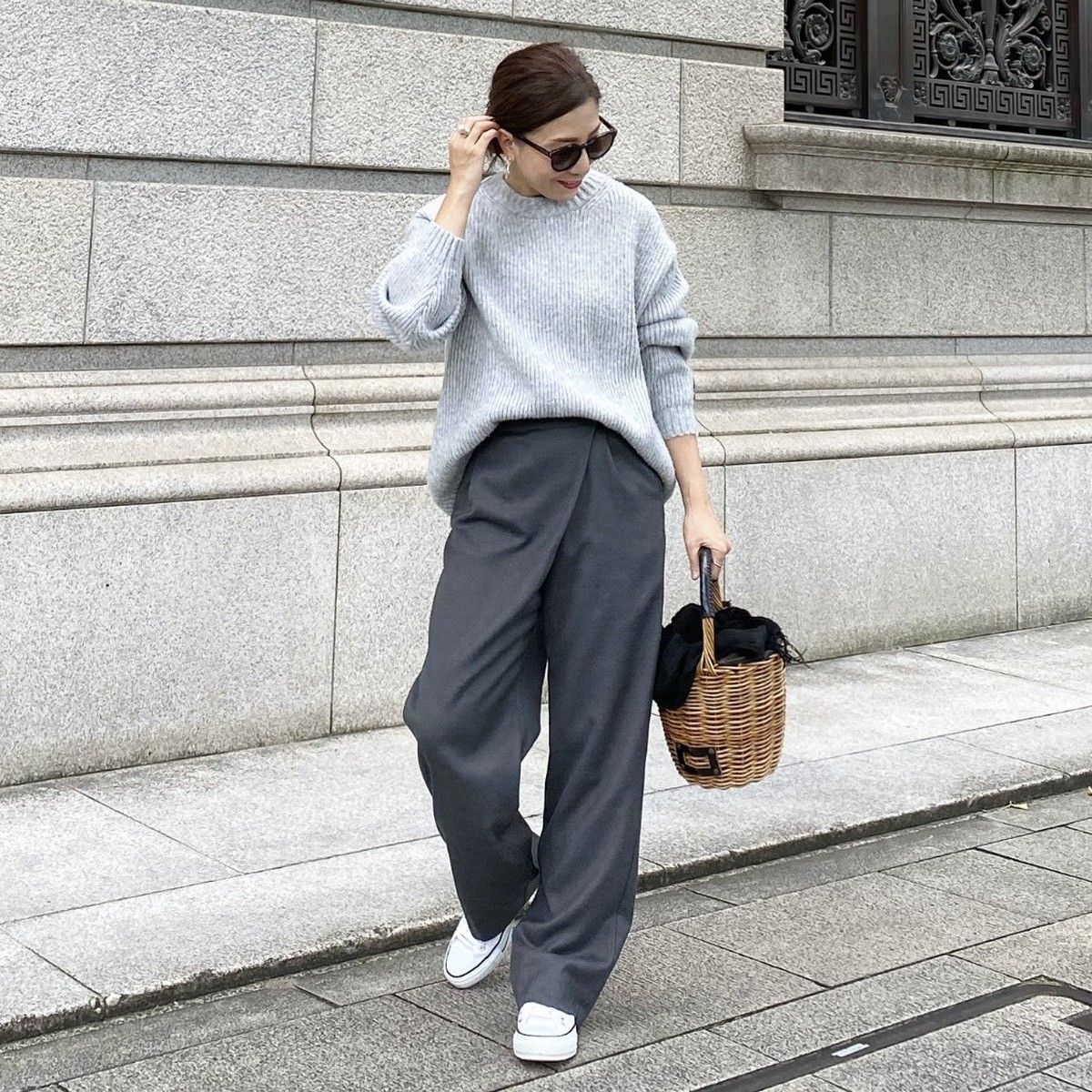 厚手ニットをアウトにして合わせても