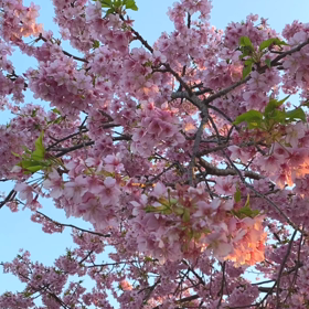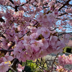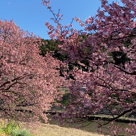 満開の河津桜とコーデ