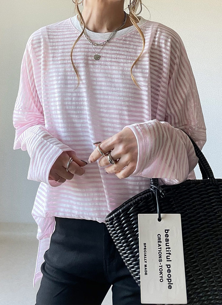 ゆるっとしたオーバーサイズのロンTは、春らしい透け感あるタイプ♪ ¥2893