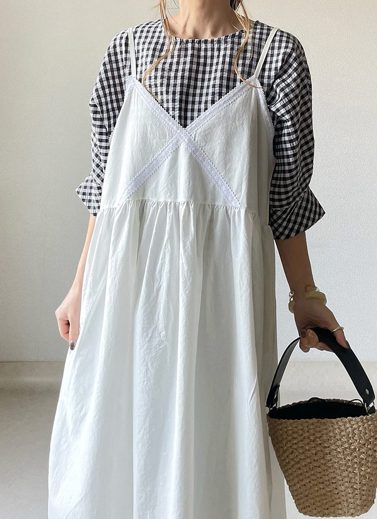 ナチュラルなコットンキャミワンピースは¥3938