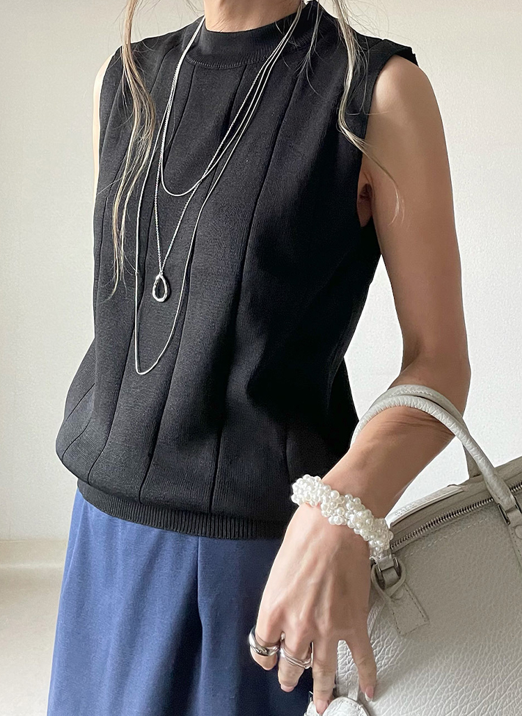 シンプルなニットタンクとのコーデが