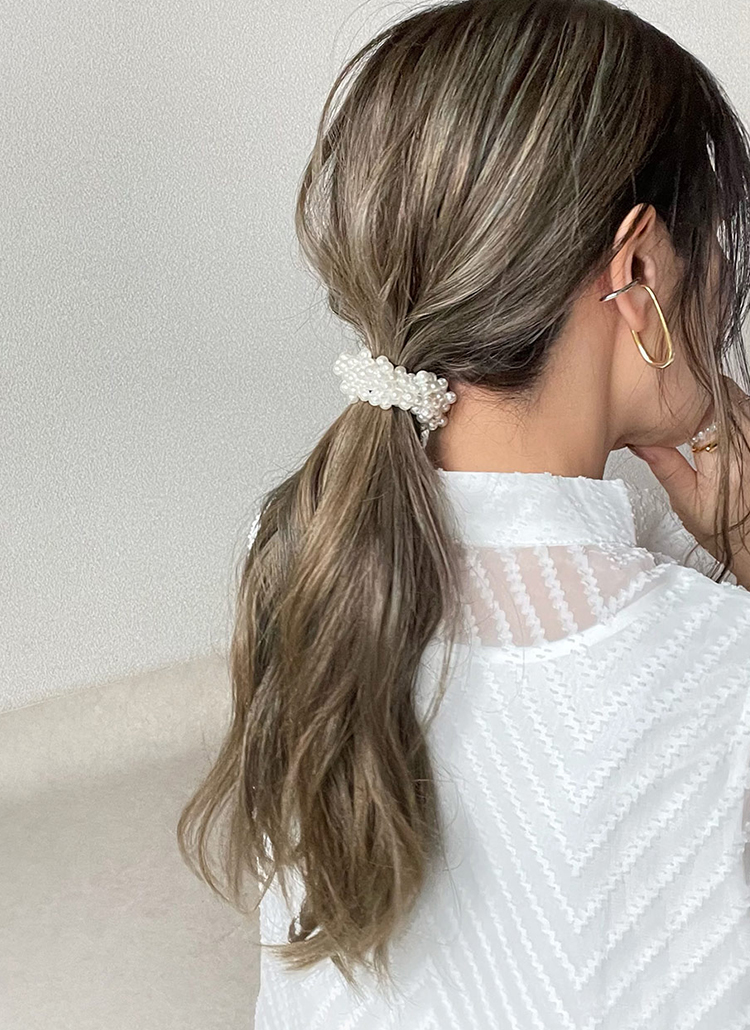 パールのヘアゴムを手首に💕