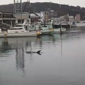 港にゴンドウ と 風力発電