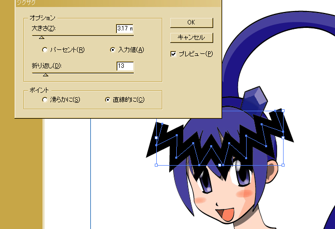 フィルタ>パスの変形>ジグザグ