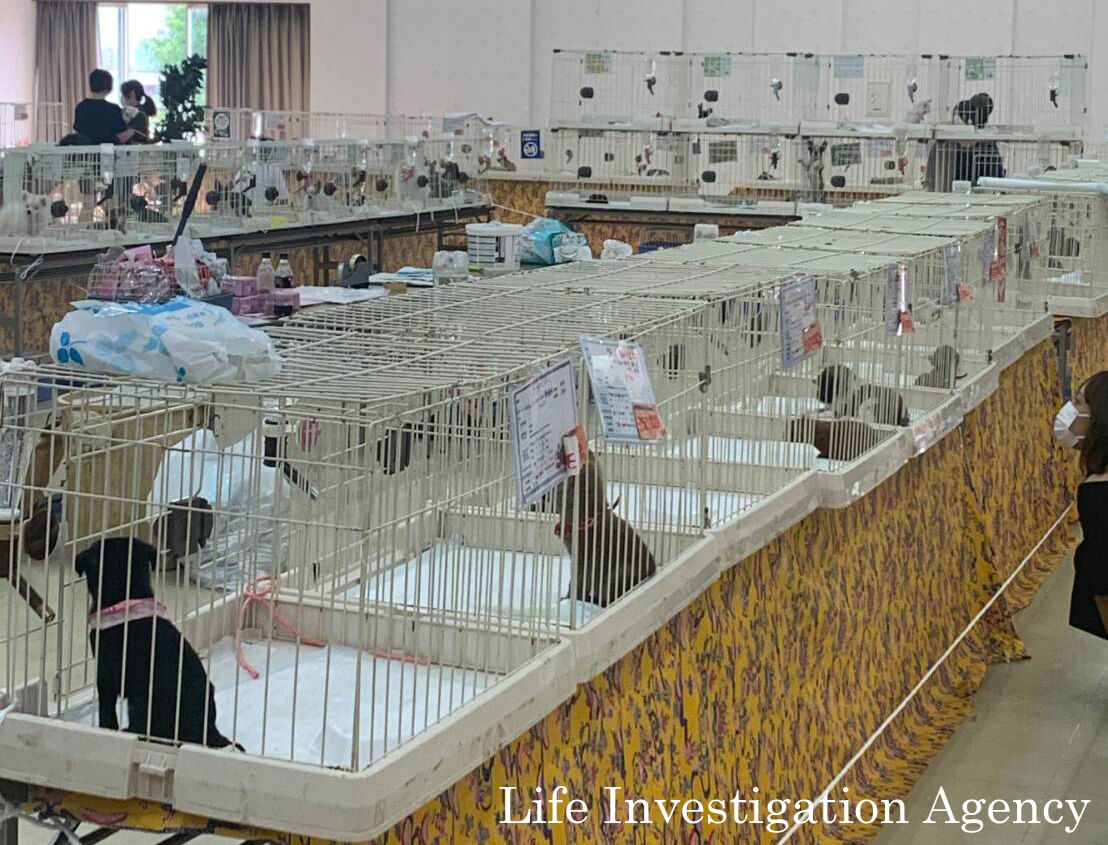 そこに出向き、約176頭の子犬、子猫達がケージにいれられていました。ケージを2段に積み重ね、テーブルの上に置かれていました。