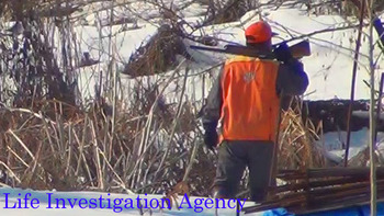 しかし、ご覧のように、この男のすぐ後ろには、仲間の猟友会員が歩いています。