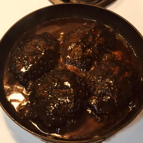 赤ワインたっぷりの煮込みハンバーグ。