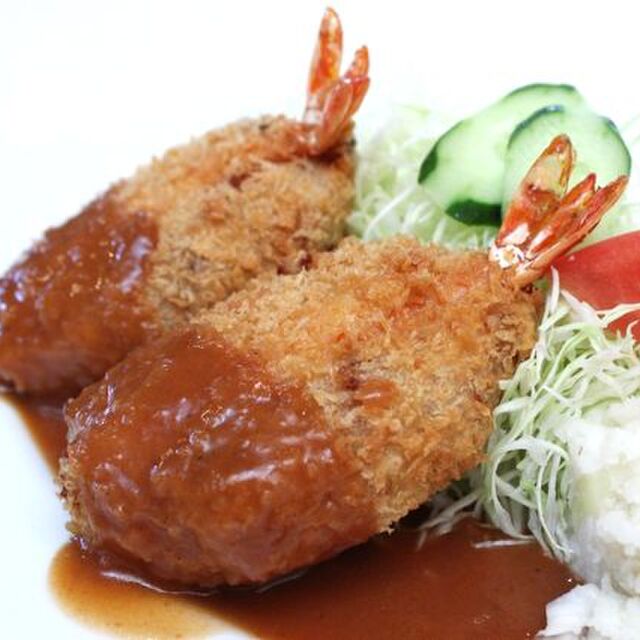 海老コロッケは別皿