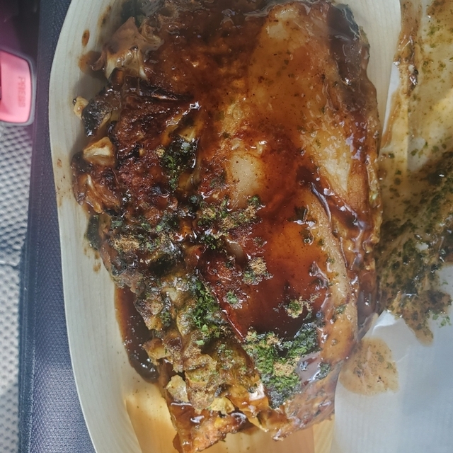 豚肉は食べ放題のサムギョプサルで使えるレベルの分厚さなので、生地に脂身の旨味が移ってコクがあり美味い。イカも冷凍のスルメイカ使用で(願望)生地に混ぜると旨味が生地の中に移って中も外も美味いんよ。ソースはノーマルでも十分だが、辛いのを載せると昔ながらのお好み焼き屋で食べてる感じもプラスで美味く感じます(実際美味い)