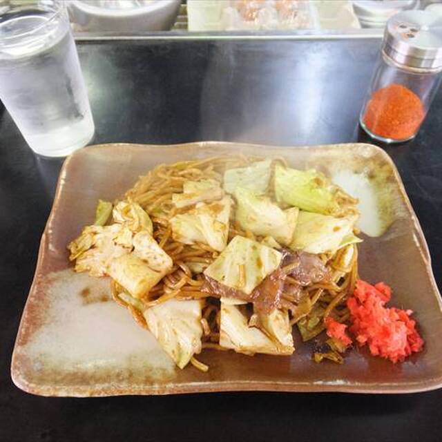 焼きそばはまぁ普通の焼きそばです。鉄板で焼いてくれるのでベチャつかずキチンとした焼きそばでコレもご飯と合うわ