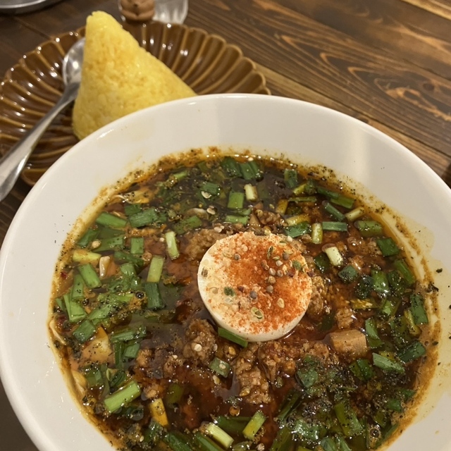 以前スープカレーを食べた時は美味しいと思わないというか、サラッとしすぎている印象だったんですがスパイスカレーを食べだして抵抗がなくなってました。辛めのサラッとしたスープはメッチャコク深いって感じでも無いんだが、スパイスが前に出てくるので辛口の味付けと丁度合ってました。鶏肉は圧力鍋で調理してるんでしょうね、スプーンで簡単に骨から外れて骨付き肉でも食べやすい。スープに浸すと旨味も活性化されて良かったです。野菜も沢山でご飯の量は普通にしましたけど食べるとかなり満腹になりました。