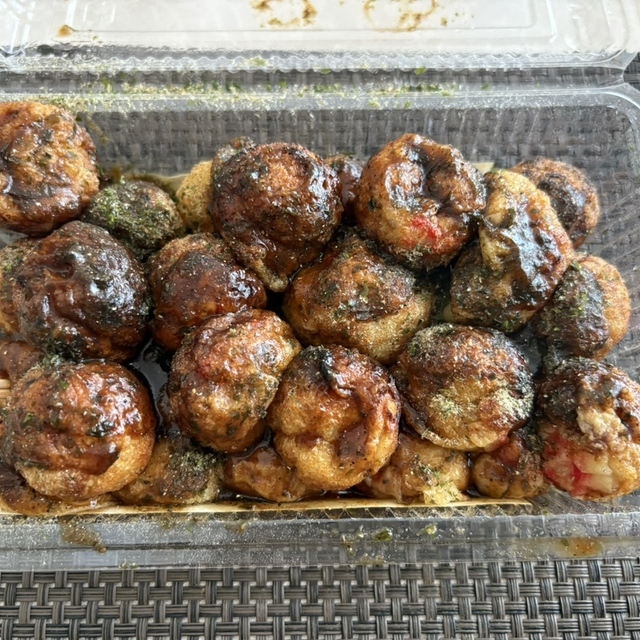 固いのは久しぶりにこんな固いの食ったなレベルでたこ焼きなのに噛むと「カリッ!」と音が出そうな部分の有る固さなんだけど安いので文句はない(今考えると明石焼きぐらいの出汁に浸して食えばもっと美味しかったな)普通のはメッチャ美味いってたこ焼きや無いんやけど、なつかし美味しい味でソースが甘ったるく無いのがうれしい。マヨネーズはもちろん無いし、こういうのは無しでも結構うまいんよな。生地も美味しくタコもちゃんと入ってましたよw