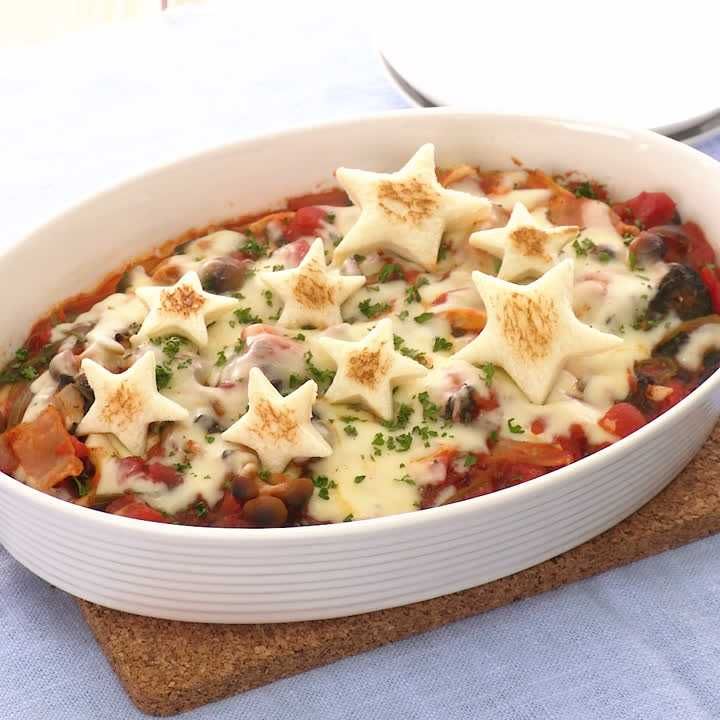 星をくりぬいた周りのパンもグラタンに投入。