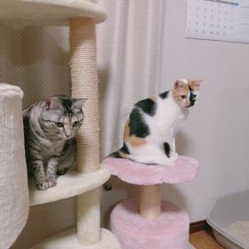 大雪の日もキャットタワーで元気な猫さんたち♪