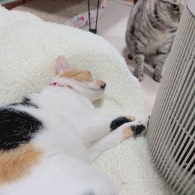 保護子猫さん続報&キジトラ先輩きららのごめん寝
