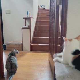 ダレる猫さんたち&一階進出中モーちゃん