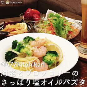 ごろごろ具材が食べ応えたっぷり!エビとブロッコリーの塩レモンパスタ!レシピ動画。