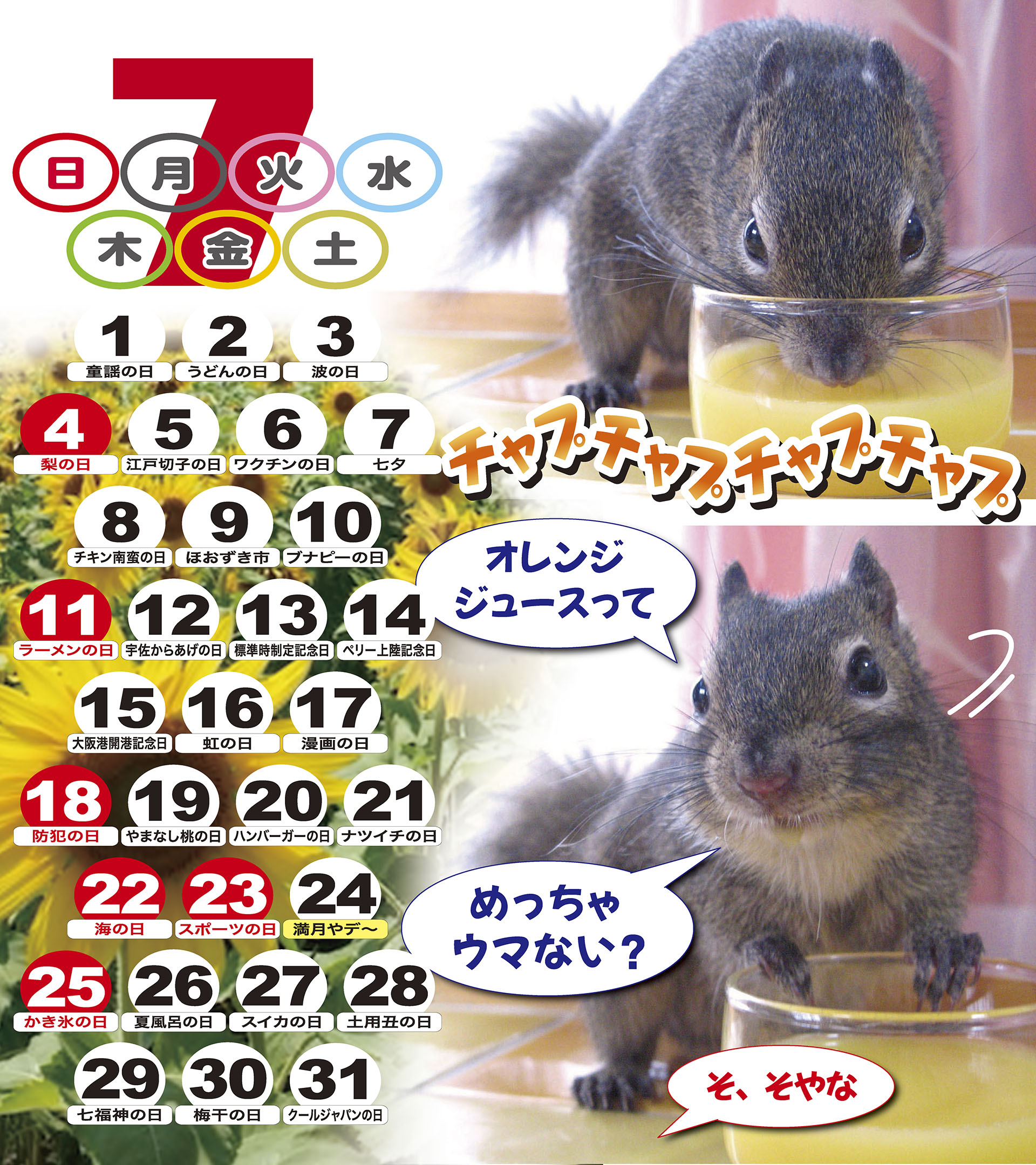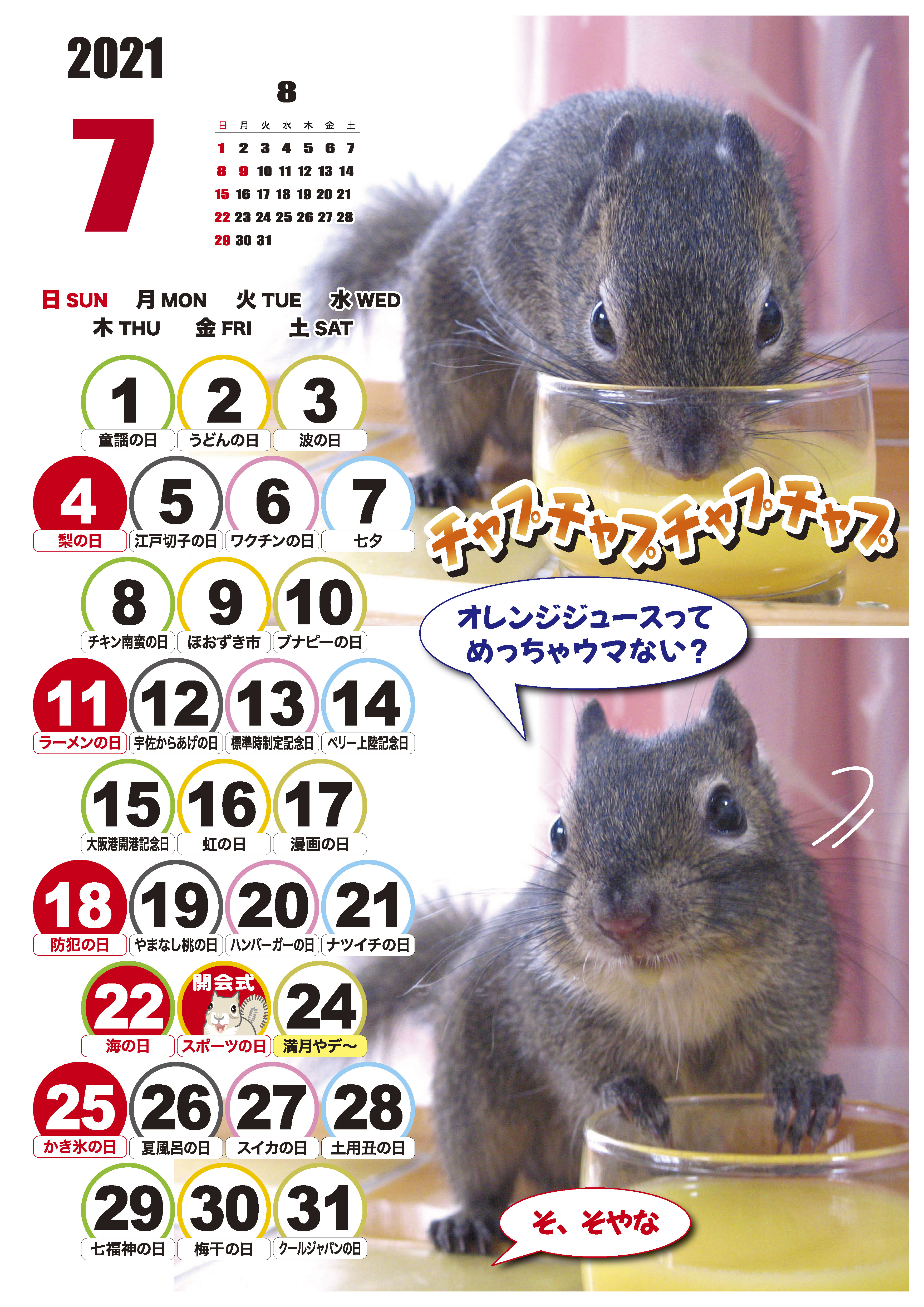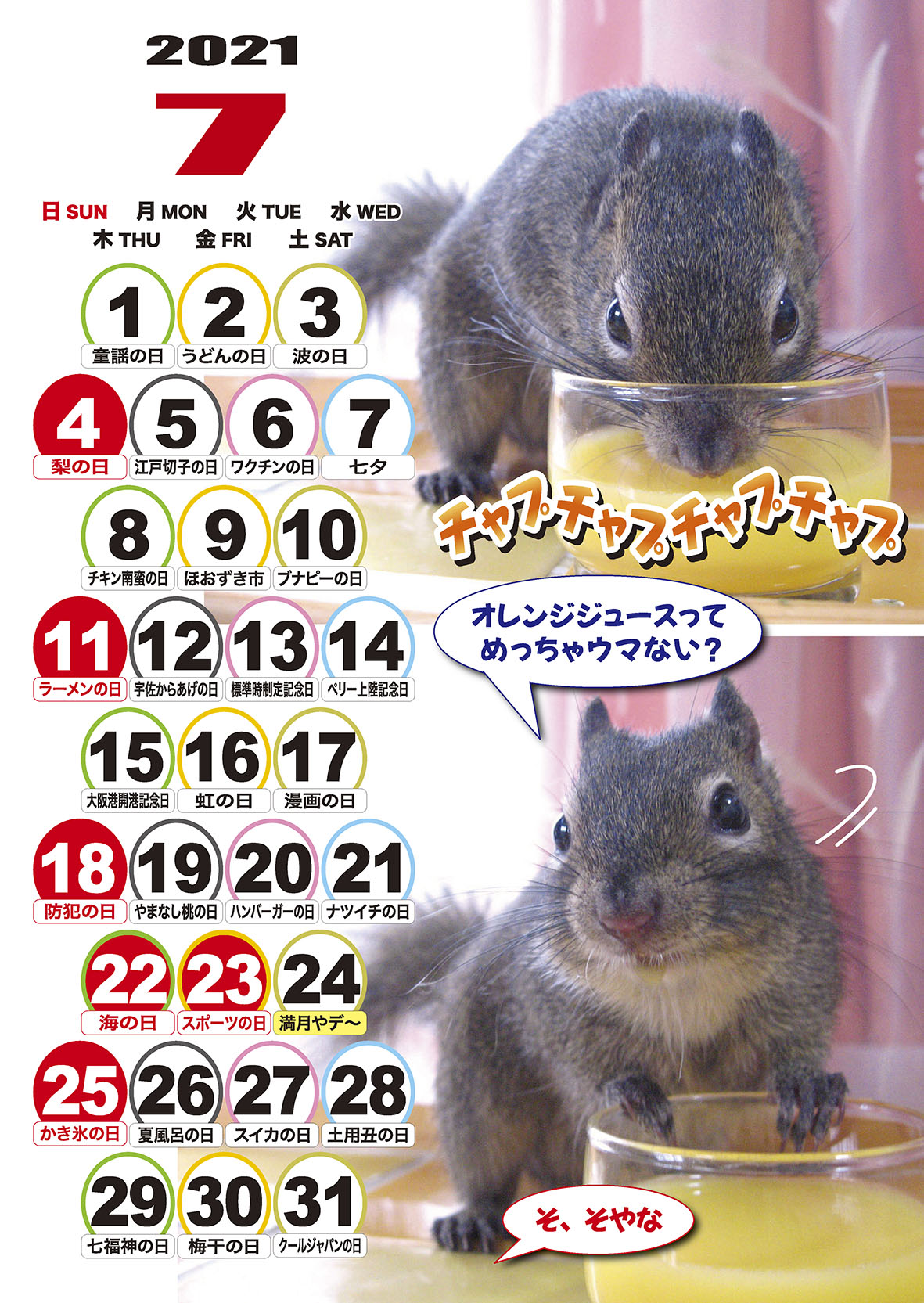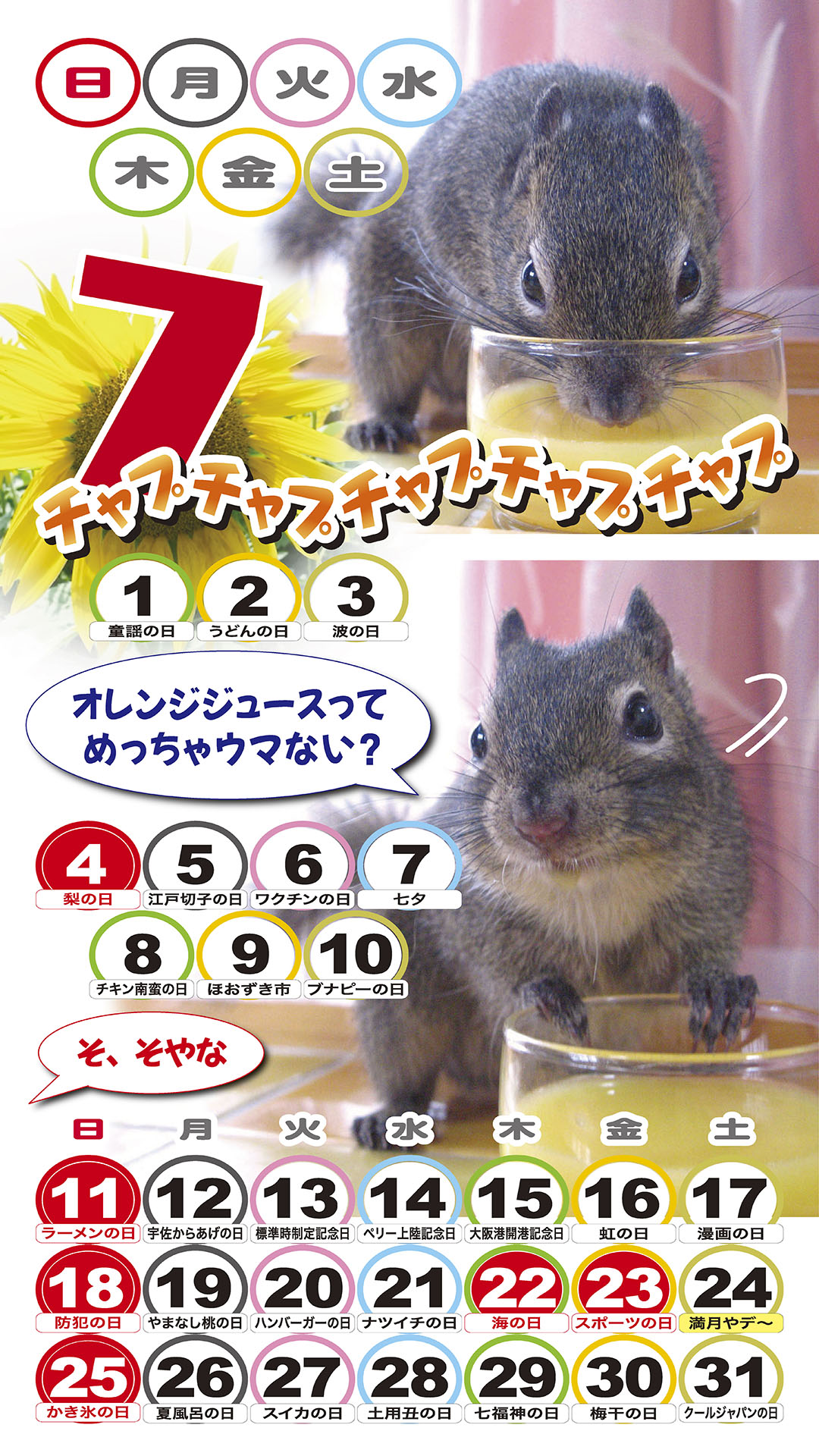 2021年7月の俵太カレンダー 2021年7月の俵太カレンダーが出来ましたー! なんと今回のカレンダーは、オリンピックにちなみまして、 五輪ならぬ7輪ピック!という 7日分割カレンダーとなっております!! ちなみに、こちらはスマホ用Aタイプです。 もちろん今回のカレンダーも ダウンロード方式により無料提供されます(*´▽`*) A3サイズ、A4サイズ、はがきサイズ、スマホサイズ、携帯待受けサイズがあります。 スマホサイズがAとBの2サイズになっています。 ご自分に合うサイズをお選びくださいね! ※ご自分のパソコンにデータをいったん保存してから、印刷してくださーい。 大きいA3サイズ → こちら A4サイズ → こちら はがきサイズ → こちら スマホサイズA → こちら スマホサイズB → こちら 携帯待ち受け → こちら 早く届いたので早めにお届け!! みんな使ってね~~ 人気ブログランキング