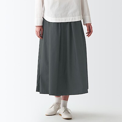 ストレッチ高密度織りタックスカート M~L・ダークグレー