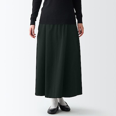 ストレッチ高密度織りタックスカート M~L・ダークグレー