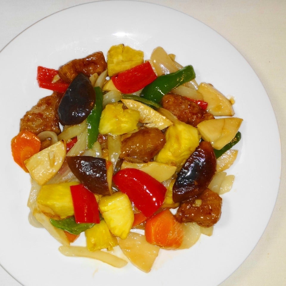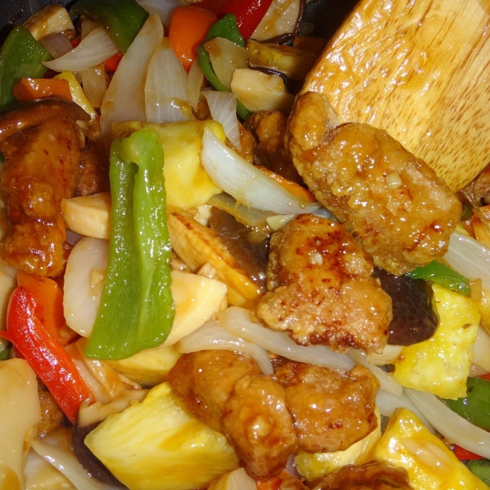 それらのカラダに良い素材でほのかな酸味に甘辛でバランスのいい味わいに仕立てた彩り酢豚です。