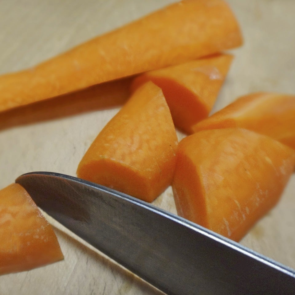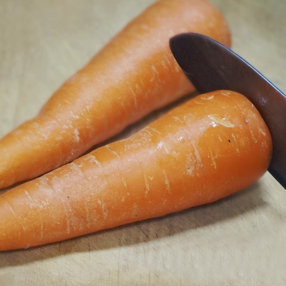 にんじんのヘタと根元を切り落とします。