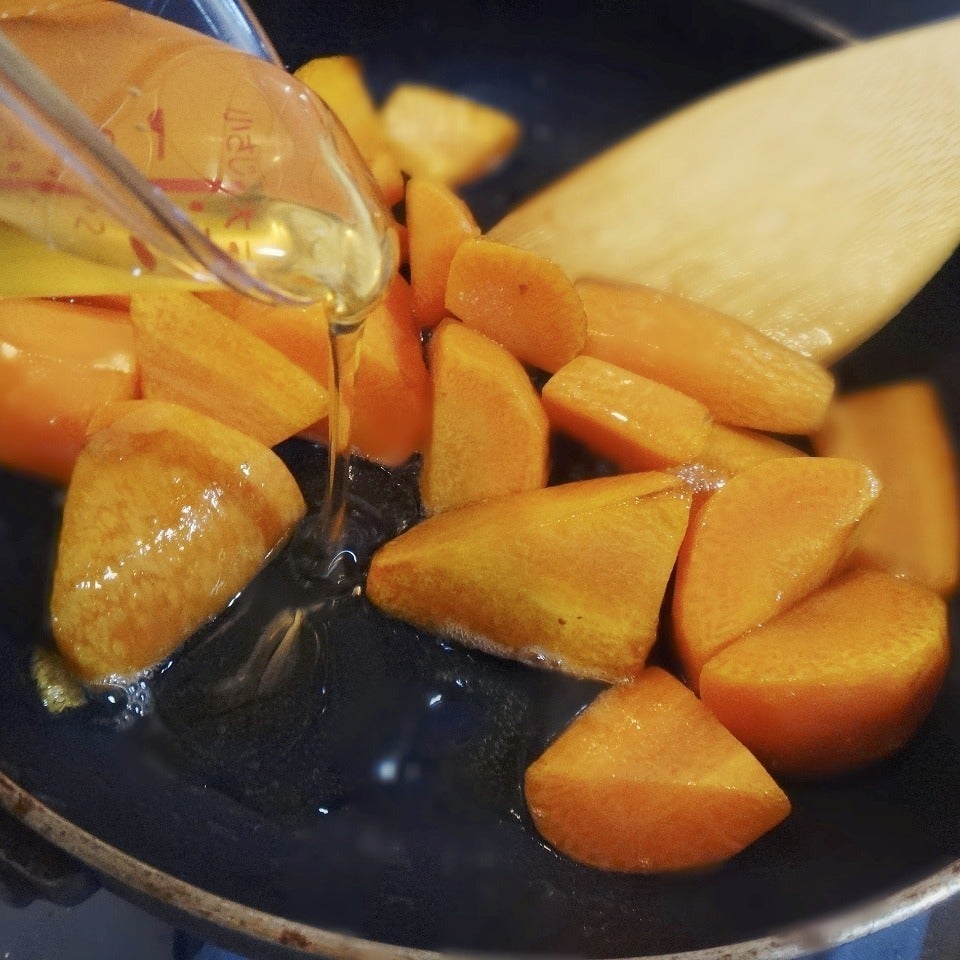 油で炒めることにより、β-カロテンの効率を高め