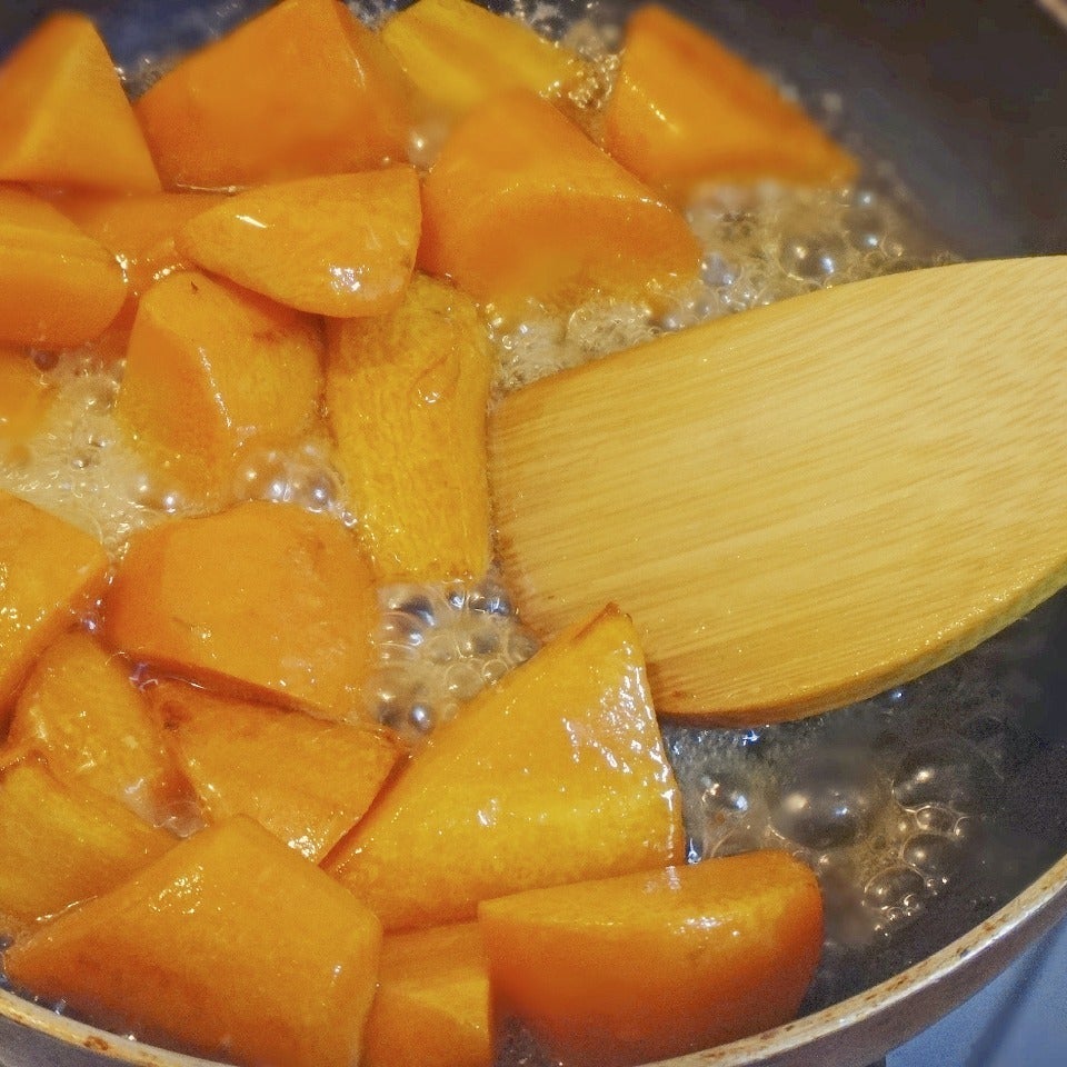 ハチミツ(大さじ2)を加え、弱火にして煮詰めます。