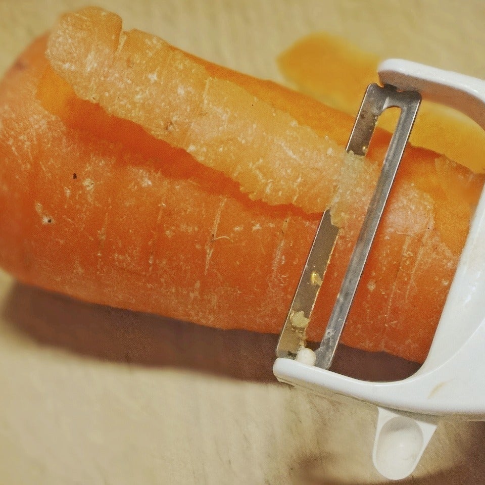 ピーラーで皮を剥きます。