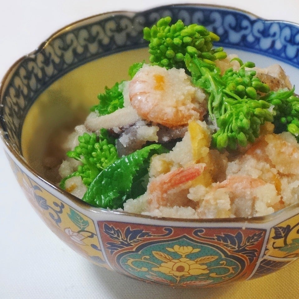 ほどよい甘さに煮詰めた「小海老と菜の花のおから煮」です。