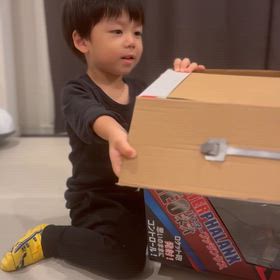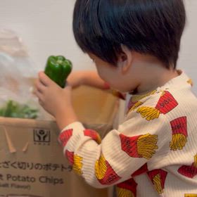 実家から届いた野菜に喜ぶ息子
