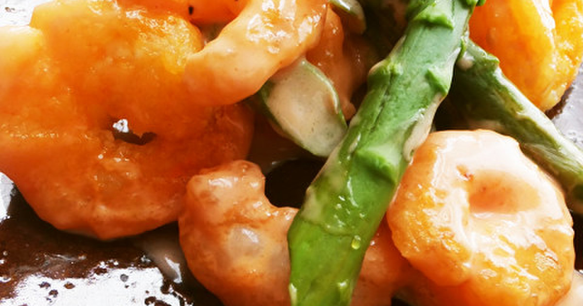海老って、炒めると縮むんですね~😭