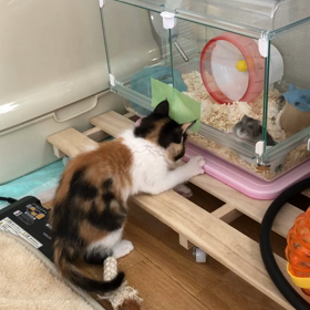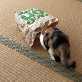 おやつが欲しい子と捕まえたくてしかたない子