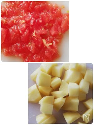 ○じゃがいもはサイコロに切ります。 -