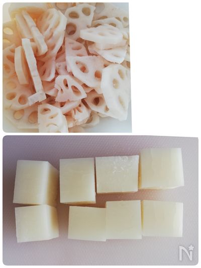 ○れんこんは半月切りにして酢水につける。