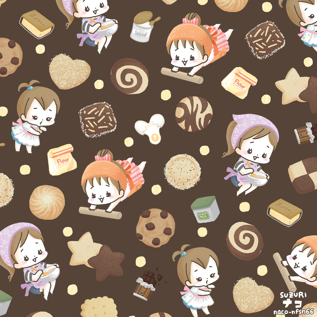 そんなら自分で作っちゃおってことでクッキー柄を作っていたのですが