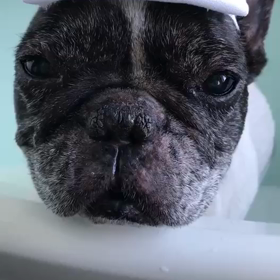 水風呂につかる犬