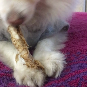 ポメ子パワー圧勝>100均おもちゃ