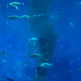 美ら海水族館のジンベイザメとマナティ、首里城