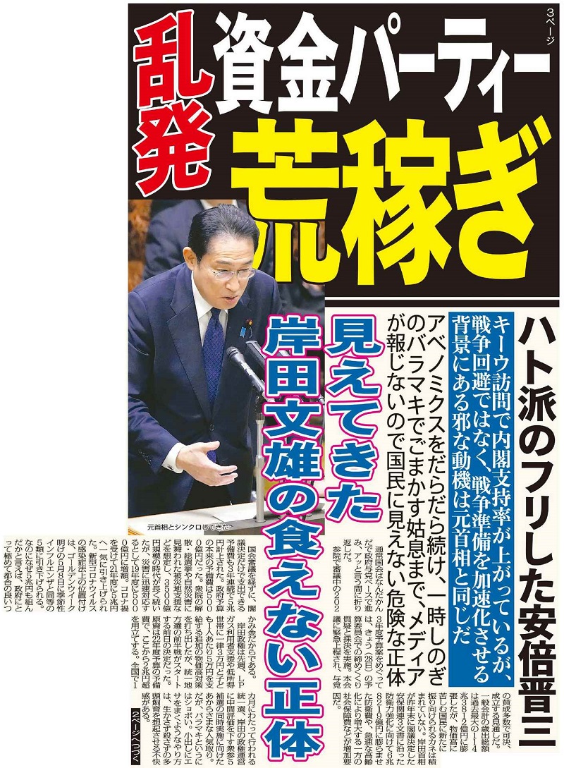※2023年3月28日 日刊ゲンダイ1面 紙面クリック拡大