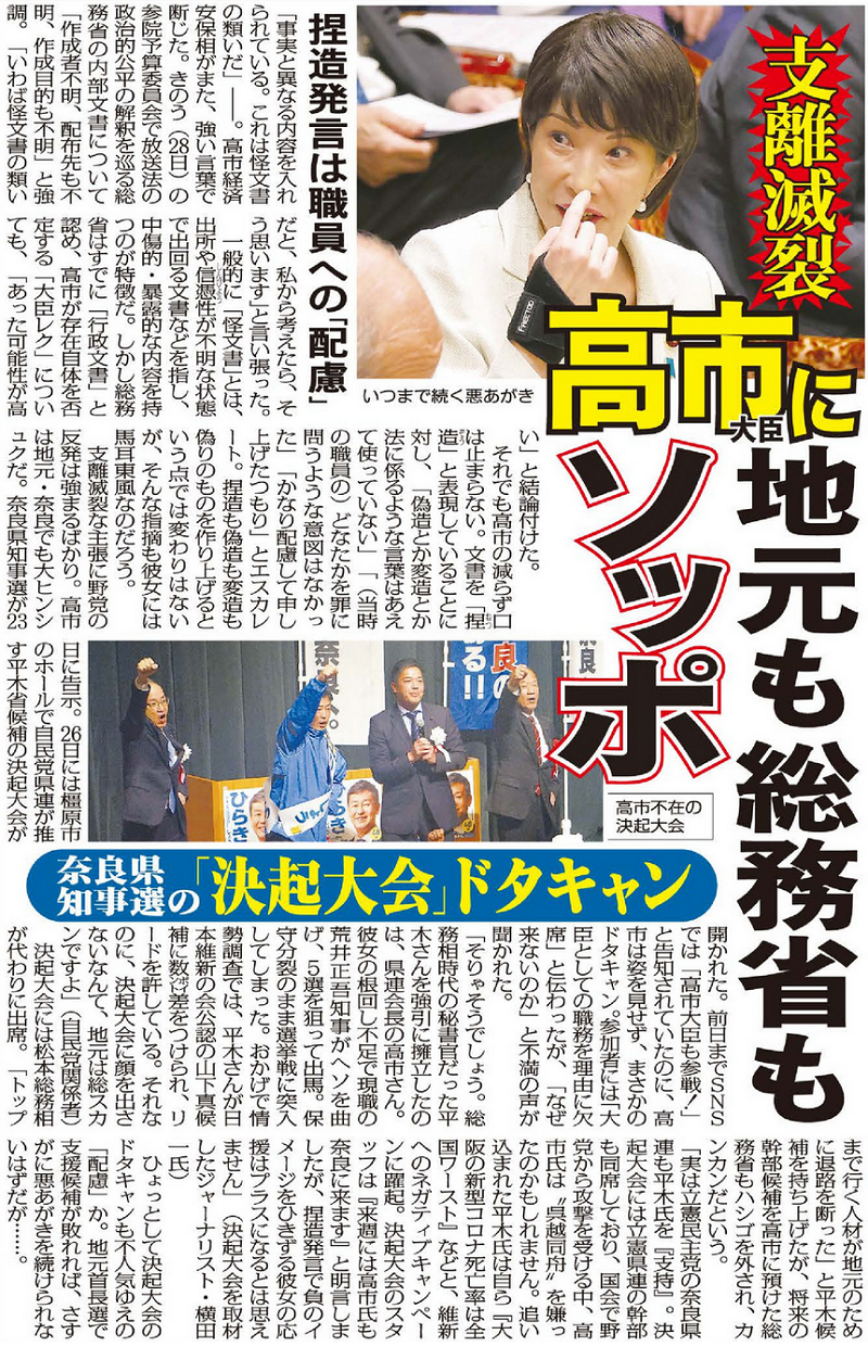 高市早苗は地元や総務省から総スカン…