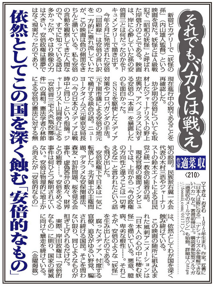 依然としてこの国を深く蝕む「安倍的なもの」