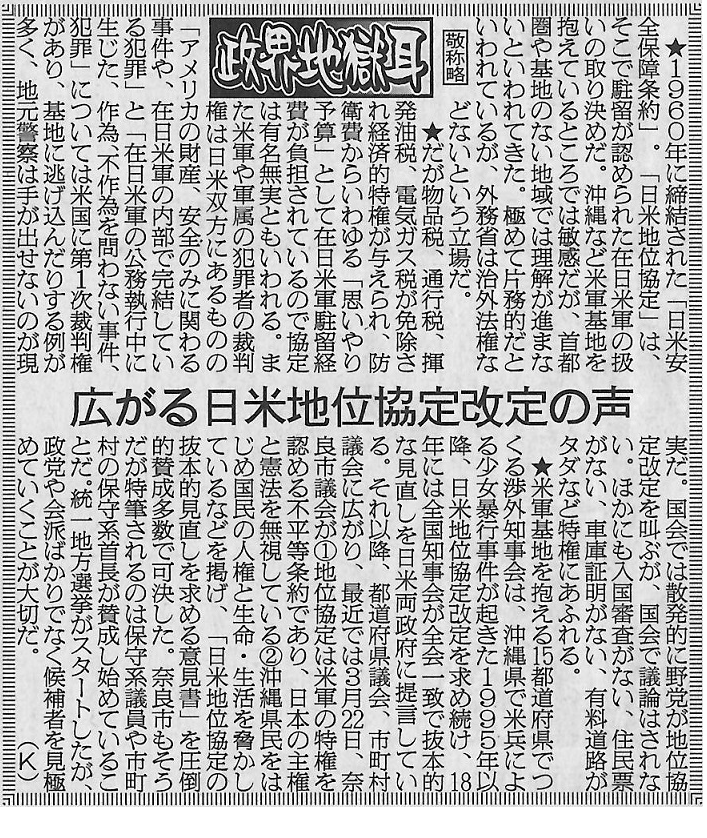 【政界地獄耳】広がる日米地位協定改定の声