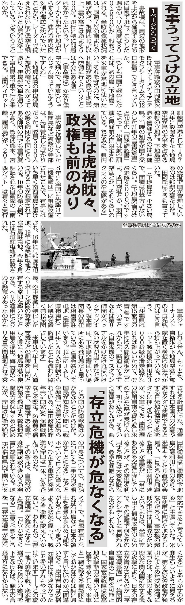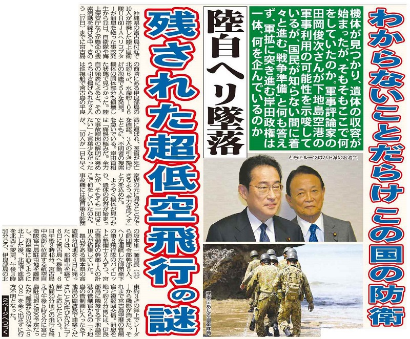 陸自ヘリ墜落 残された超低空飛行の謎