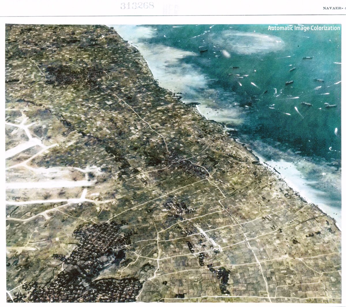79年前の今日。1945年4月24日沖縄・読谷飛行場の沖に停泊する大量のアメリカ軍艦艇。