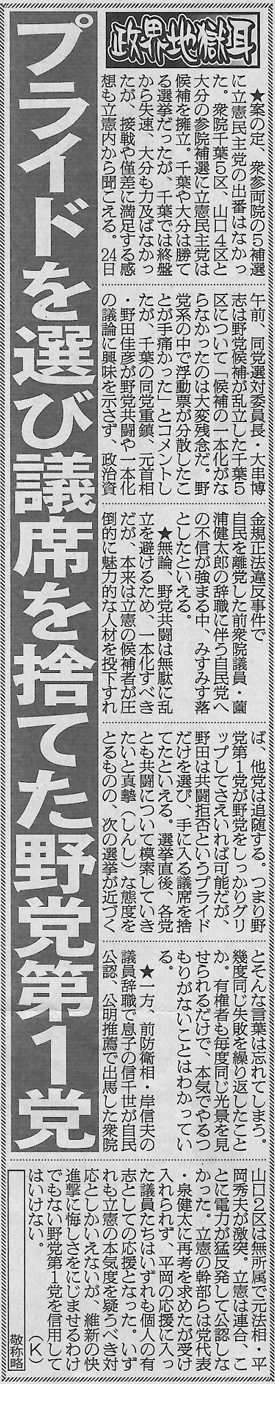 【政界地獄耳】共闘拒否というプライド選び、
