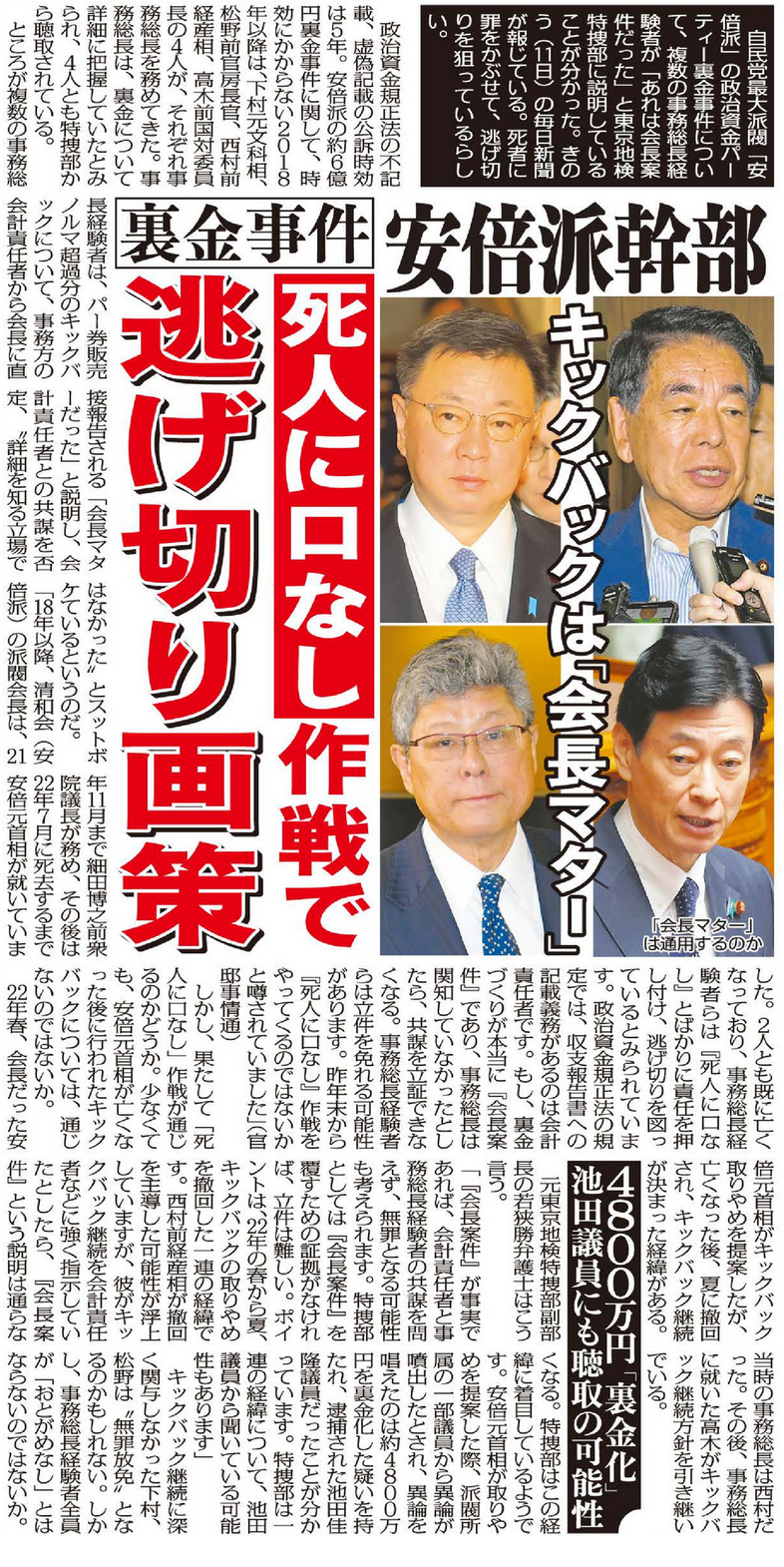 安倍派幹部「裏金事件」で逃げ切り画策“