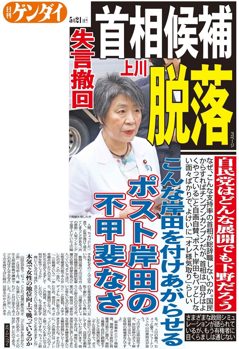 岸田後継「自滅」。